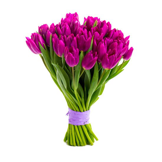 Bukiet składający się z fioletowych tulipanów, kwiaty pochodzą od lokalnych ogrodników. Piękny bukiet na każdą okazję.