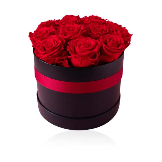 W skład kompozycji wchodzą róże w kolorze czerwonym, elegancka kompozycja z róż w ozdobnym pudełku to doskonały sposób aby okazać uczucia lub przesłać życzenia.