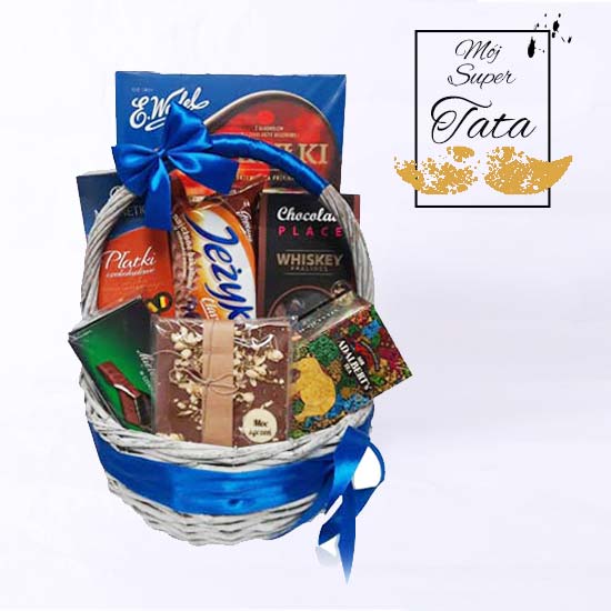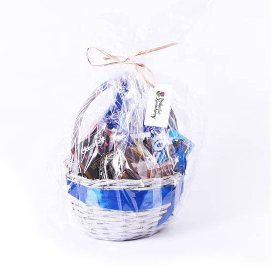 Kosz upominkowy pełen pysznych słodkości, jest to wspaniały pomysł na prezent dla niego, może być idealną niespodzianką na każdą okazję: urodziny, podziękowanie, wyznanie i wiele innych.