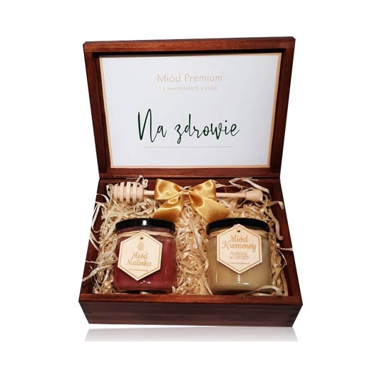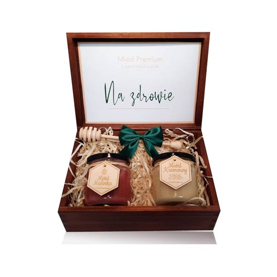 Zestaw miodów Na zdrowie, to zestaw smakowych miodów prosto z lokalnej pasieki, smaczny i naturalnie zdrowy zestaw w ozdobnej drewnianej skrzyneczce. Jest to doskonały prezent na zimowe dni. W prezencie dodaliśmy drewnianą łyżeczkę do miodu.