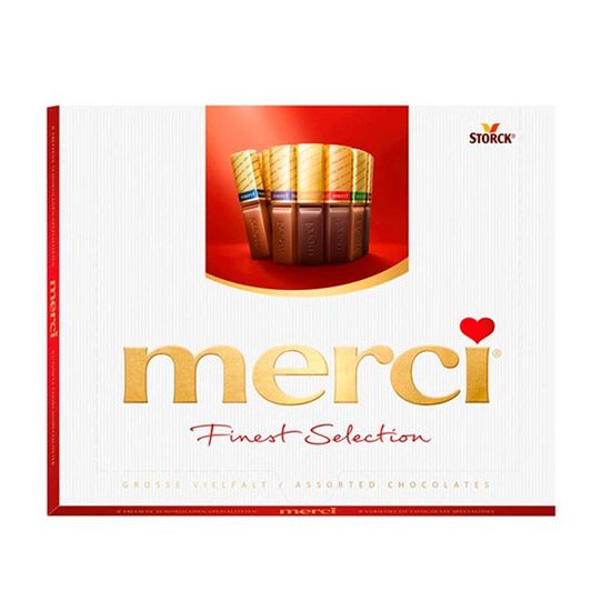 Czekoladki Merci 250g, kolekcja wykwintnych pojedyńczo pakowanych czekoladek w ośmiu smakach.